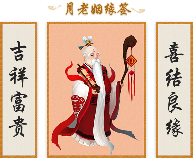 月老灵签姻缘签,可以向月老求签占卜姻缘和感情,祈求月下老人为您牵红线,这就是千百年来许多人供奉月老的原因。月下老人掌管的世间五大姻缘: