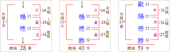 人格的算法:將姓氏的最後一字與名字的最初一字相加之總和為人格。